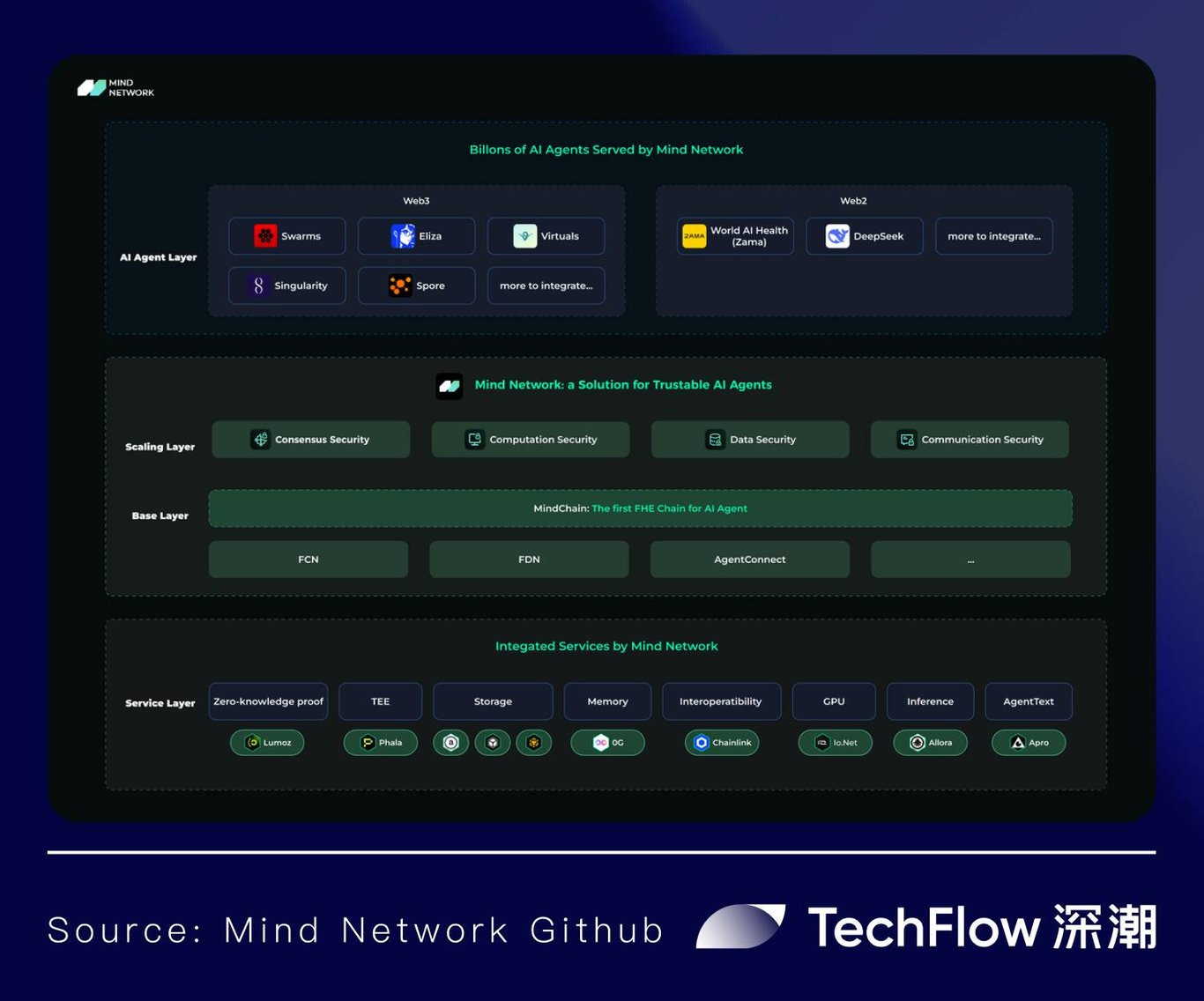 Điều đáng nói là Mind Network đã được các dự án AI hàng đầu công nhận: Vào tháng 2 năm 2025, DeepSeek thông báo rằng thư viện mã mã nguồn mở của họ tích hợp khuôn khổ bảo mật AI crypto dựa trên FHE đầu tiên là Mind FHE Rust SDK. SDK này được phát triển dựa trên ngôn ngữ Rust và nhằm mục đích đảm bảo bảo mật dữ liệu, bảo mật máy tính, bảo mật đồng thuận và bảo mật cộng tác giữa các tác nhân AI.