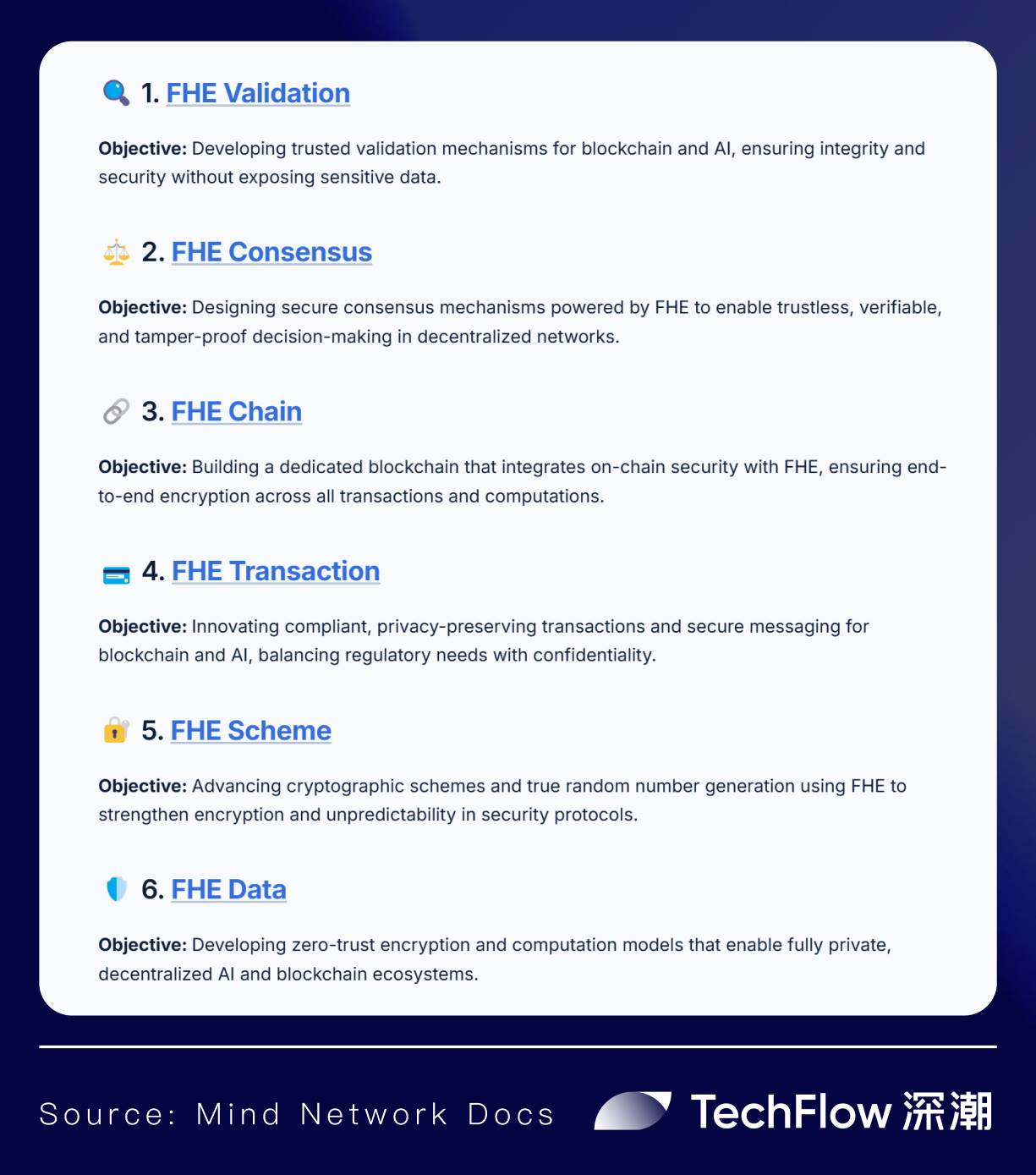Trên cơ sở hạ tầng được xây dựng trên công nghệ FHE, Mind Network, chuyên về FHE, đã đạt được một số kết quả nghiên cứu, bao gồm xác minh FHE để đảm bảo tính toàn vẹn và bảo mật mà không làm lộ dữ liệu nhạy cảm, sự đồng thuận FHE để đảm bảo phi tập trung là không cần tin cậy và có thể xác minh được, FHE Bridge để đạt được các tương tác Chuỗi chéo thực sự an toàn và MindChain, blockchain FHE đầu tiên trên thế giới. Những kết quả này xoay quanh cốt lõi của Agentic AI và đưa ra các giải pháp tương ứng cho những khó khăn mà quá trình phát triển hệ sinh thái AgenticWorld gặp phải, dù là dữ liệu, truyền thông, điện toán hay bảo mật đồng thuận.