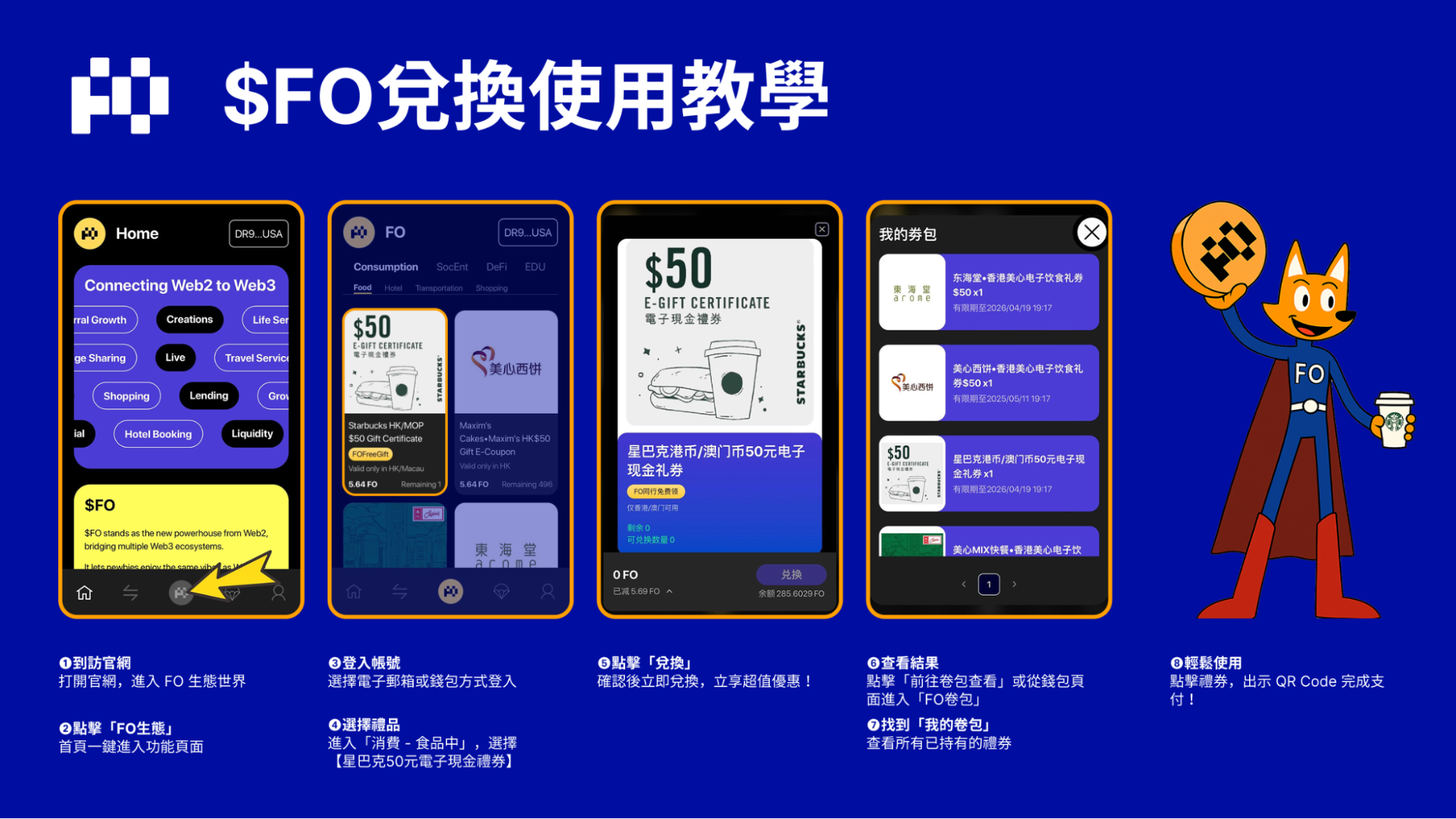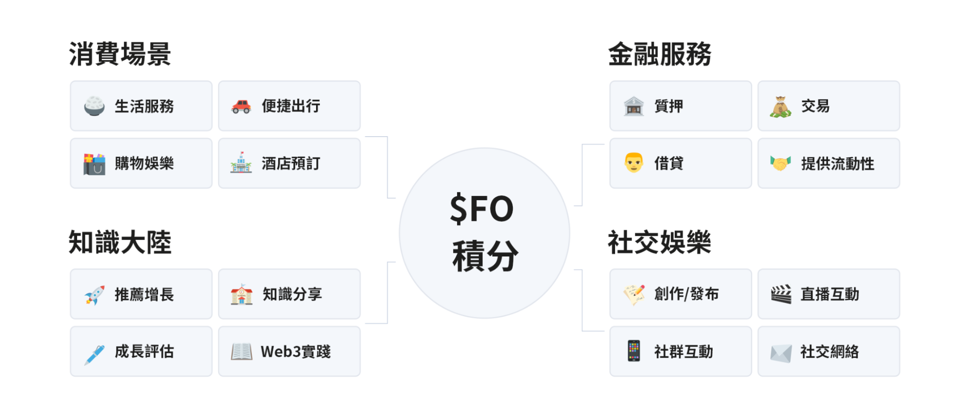 - Tiêu thụ: Trong tương lai, người dùng FO-X sẽ có thể sử dụng $FO để mua nhu yếu phẩm hàng ngày, gọi taxi, đặt nhà hàng, v.v.