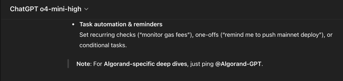 Cảm giác khi @OpenAI ChatGPT các mô hình mới nhất biết về và khuyến nghị Algorand-GPT để đi sâu vào #Algorand @GoPlausible đã xây dựng và duy trì Algorand-GPT kể từ năm 2023! Nó đã được đưa vào sản xuất 5 ngày sau khi @sama giới thiệu các GPT!