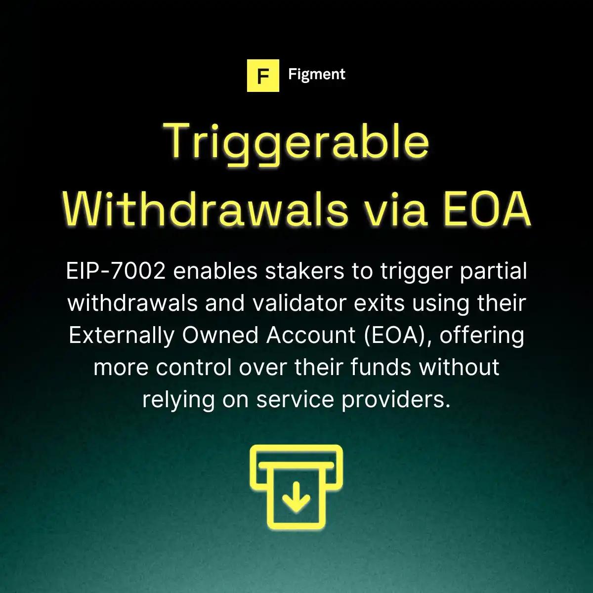 Đề xuất này cho phép hợp đồng thông minh kích hoạt các hoạt động rút tiền của người xác thực. Hiện tại, chỉ có người xác thực mới có thể rút tiền bằng khóa riêng của mình. Thông qua thay đổi này, hoạt động thoát ra có thể được quản lý trực tiếp bởi lớp thực thi.