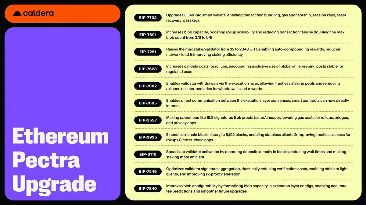 Tác động: Nâng cao trải nghiệm của nhà phát triển và khả năng mở rộng của hệ sinh thái, giúp Ethereum phát triển hiệu quả hơn. PECTRA là một nâng cấp lớn. Nó mang lại những tiến bộ công nghệ quan trọng, làm cho Ethereum trở nên dễ mở rộng, hiệu quả về chi phí và thân thiện với người dùng hơn.