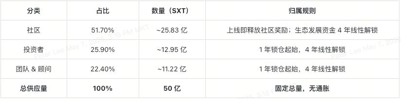 – Chainlink BUILD Airdrop: 200 triệu SXT (chiếm 4% tổng số) được dành riêng cho những người đặt cược Chainlink , trong đó 100 triệu sẽ được phát hành vào tháng 5 năm 2025.
