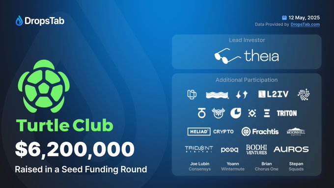 🚀 http:/Turtle.Club, giao thức phân phối thanh khoản, đã huy động được vòng Seed 6,2 triệu đô la do HEIA Blockchain (@TheiaResearch, @tradernoah) dẫn đầu, với sự tham gia của: Susquehanna (SIG), @ConsenSys, @LaserDigital_, @l2iterative, @Re7Labs, @SeliniCapital, @ChorusOne, Trident
