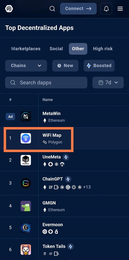 🔥Bản đồ WiFi vừa đạt #1 trong số các Phi tập trung hàng đầu trên @DappRadar — trong 7 ngày🔥 Đây không chỉ là thành tích của chúng tôi. Đó là chiến thắng cho tất cả những người xây dựng một internet tự do, phi tập trung. Bản đồ WiFi đang ở vị trí đầu. Hãy tiếp tục 🚀