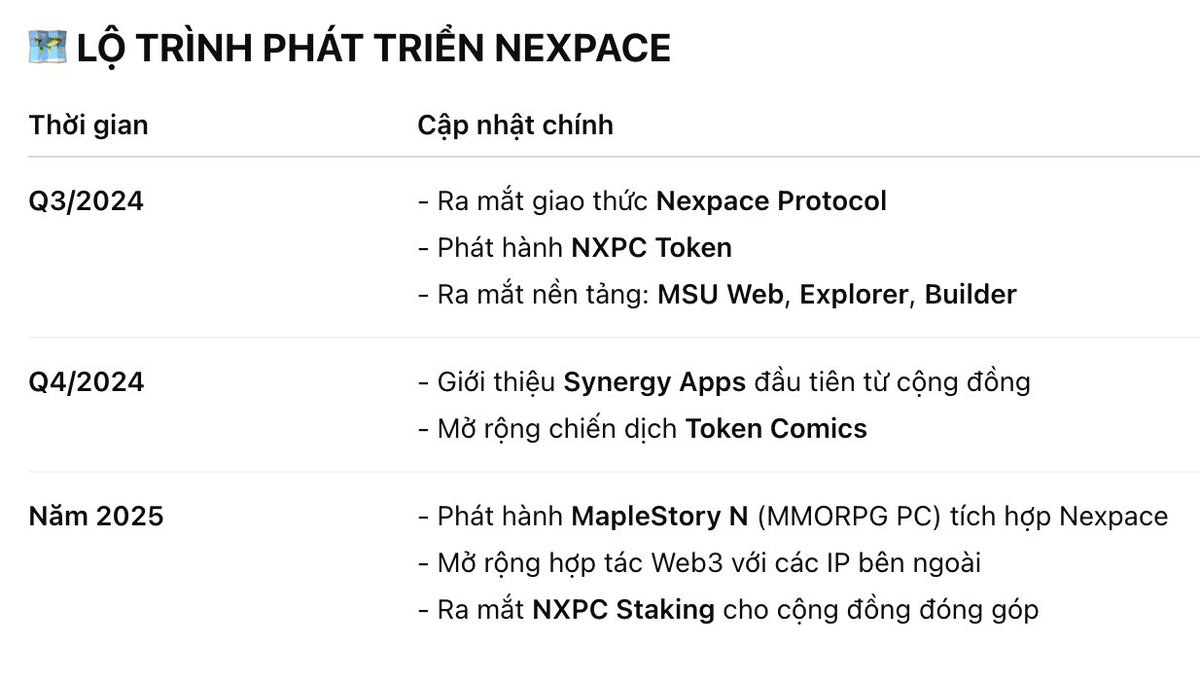 3/ Lộ trình phát triển (Roadmap) dự án Nexpace $NXPC