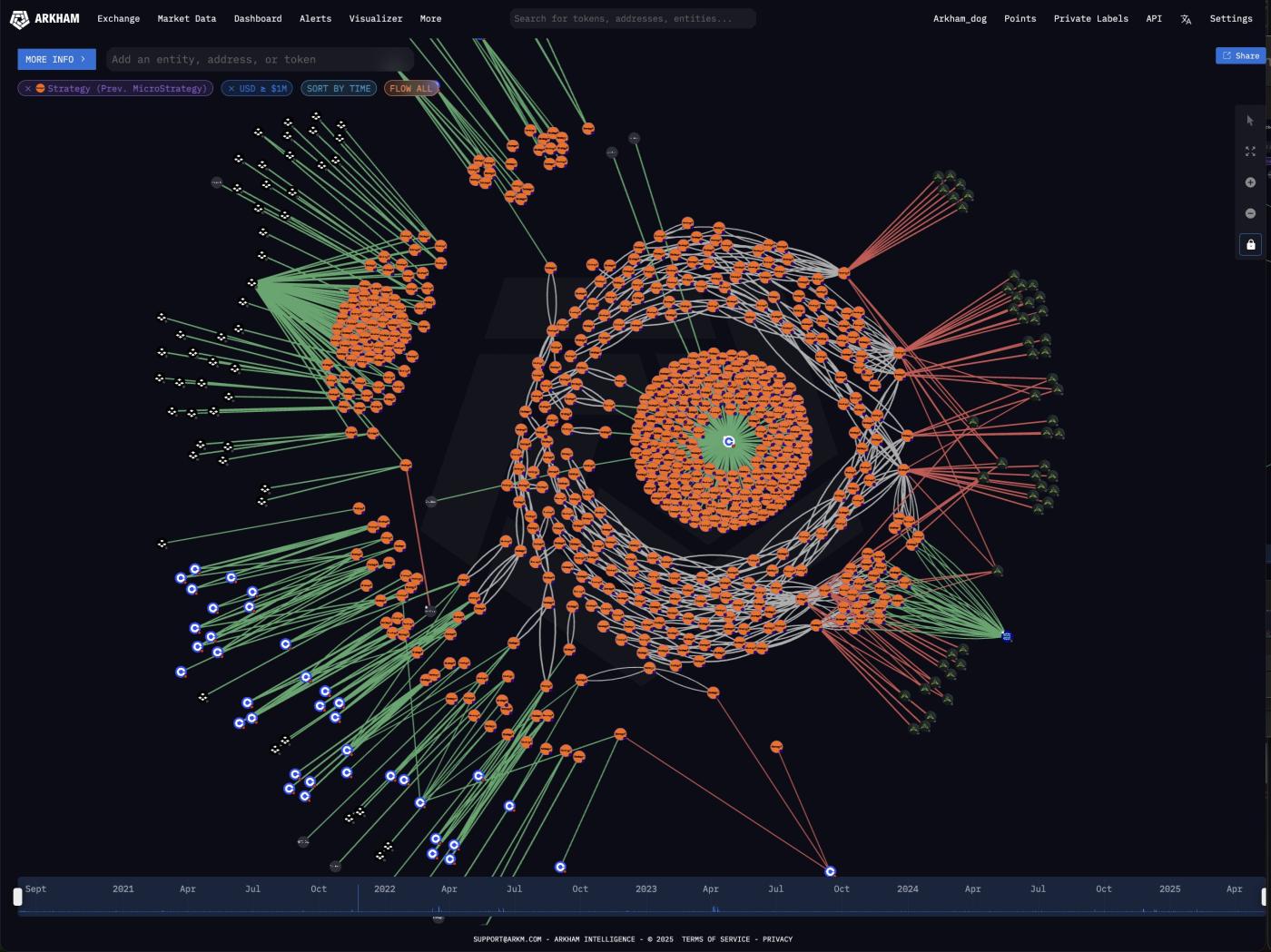 Địa chỉ theo dõi Bitcoin vị thế giữ của MicroStrategy của Arkham . Nguồn: Arkham
