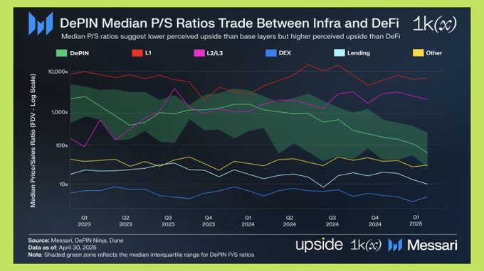 DePIN được định vị giữa L1 (Layer-1) và DeFi về mặt P/S ratio.