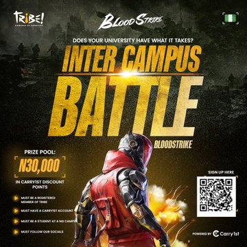 🇳🇬Bạn có nghĩ mình có đủ khả năng để trở thành người giỏi nhất ở Nigeria không? 🔰Trận chiến Bộ tộc Intercampus đã trở lại, và lần này còn nhiều hơn thế! Hãy chắc chắn đăng ký để có cơ hội giành được phần chia của 30.000 đồng naira trong điểm giảm giá #carry1st! ➡️Quét mã QR hoặc sử dụng liên kết dưới đây để đăng ký