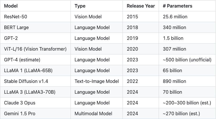 Bảng 1: Tăng trưởng theo cấp số nhân trong kích thước tham số mô hình