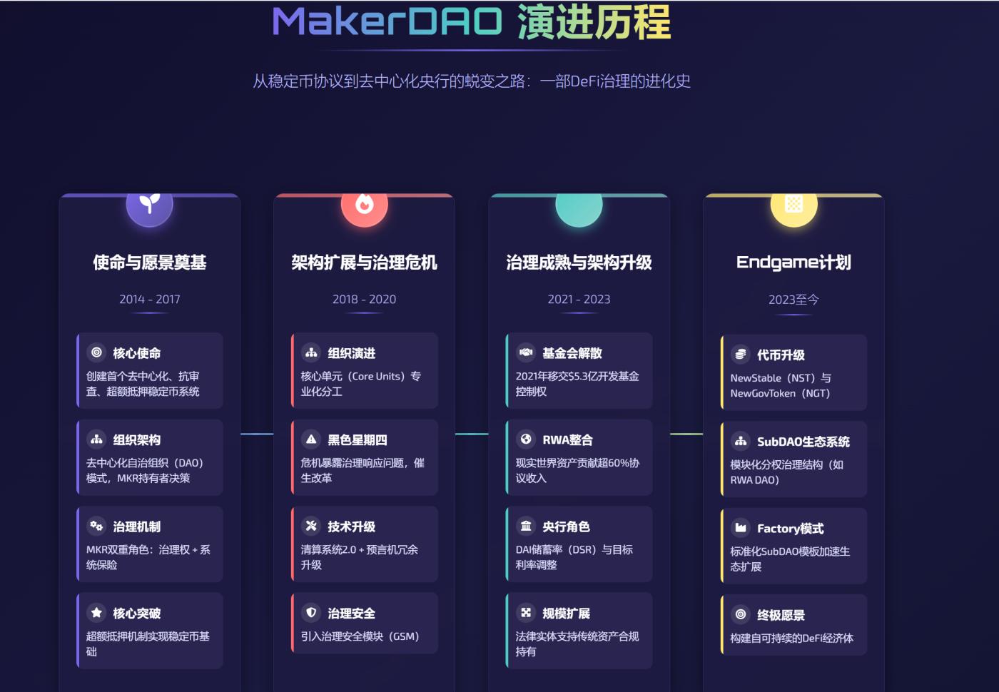 DAO đã dần phát triển từ những lỗ hổng bảo mật và quản trị được phơi bày trong sự cố "The DAO" ban đầu sang mô hình token kép và cơ chế bỏ phiếu ủy quyền do MakerDAO đại diện, và tiếp tục đến kiến trúc mô-đun -đun DAO con "Endgame", hiện thực hóa sự chuyển đổi từ quản trị cộng đồng đơn lẻ sang hệ thống quản trị đa lớp với sự phân công lao động tinh gọn hơn và trách nhiệm rõ ràng hơn. Quá trình phát triển này phản ánh sự trưởng thành và đổi mới liên tục của DAO trong việc thiết kế các cơ chế quản trị.