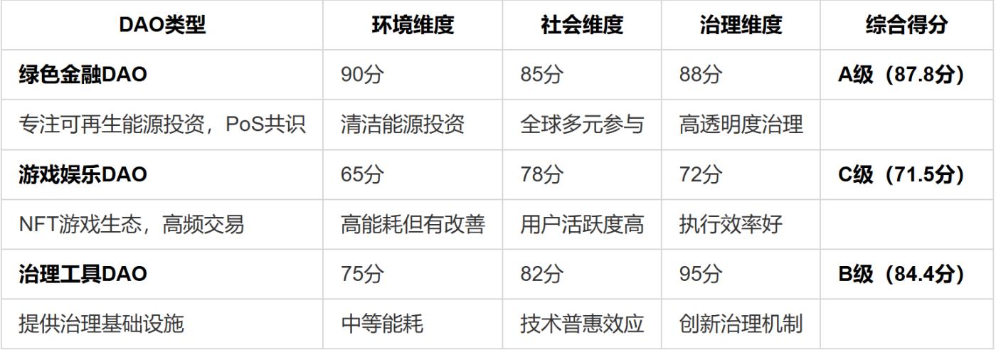 Xác minh động: Lấy DAO tài chính xanh làm ví dụ, mô phỏng đánh giá 12 tháng cho thấy khuôn khổ có thể nắm bắt hiệu quả sự khác biệt trong các giai đoạn phát triển của DAO (75 điểm trong giai đoạn cơ bản → 85 điểm trong giai đoạn phát triển → 88 điểm trong giai đoạn trưởng thành).