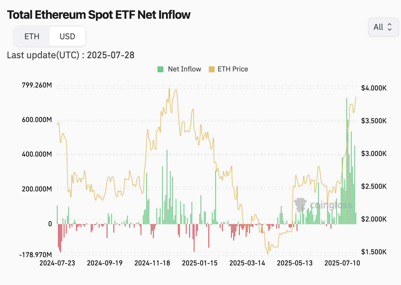 Ethereum đã tăng vọt 53% trong tháng 7, nhưng tăng này không phải do sự cường điệu. Đó là một xu hướng mang tính cấu trúc được thúc đẩy bởi việc phân bổ vốn của các tổ chức vào các quỹ ETF và trái phiếu kho bạc tài sản kỹ thuật số (DAT) ngày càng tăng, sự chuyển mình của Quỹ Ethereum, và sự rõ ràng trong quy định gần đây.