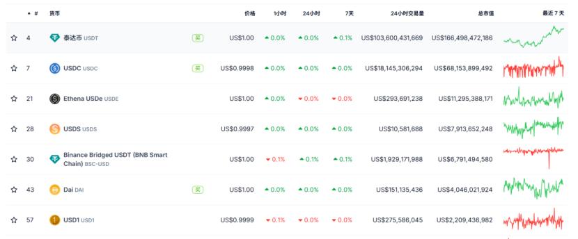 (Hình 1: Xếp hạng giá trị vốn hóa thị trường của stablecoin. Nguồn: coingecko)
