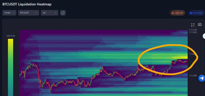 Hơn nưã, điểm thanh lý lớn nhất hiện tại đang là 114K, hợp thức hóa cho việc có thể tăng giá @coinank_com