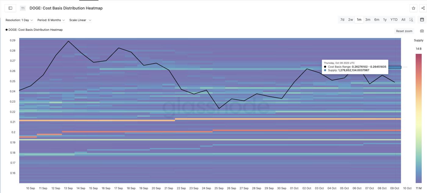Một động thái tương tự 20% bây giờ có thể nâng DOGE từ phạm vi hiện tại lên gần 0.29 USD, cho phép nó vượt qua các dải cung nặng giữa 0.26–0.27 USD. Phá vỡ những vùng này có thể cuối cùng khởi động một xu hướng tăng ngắn hạn.