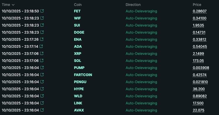 Mặt dù không kích hoạt ADL, nhưng vì một lỗi hệ thống nghiêm trọng từ Ethena, khiến cho hàng loạt token như wBETH, BNSOL và USDe đã lao dốc không phanh, kéo theo làn sóng thanh lý vị thế Long các loại tài sàn này.