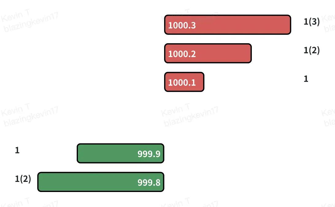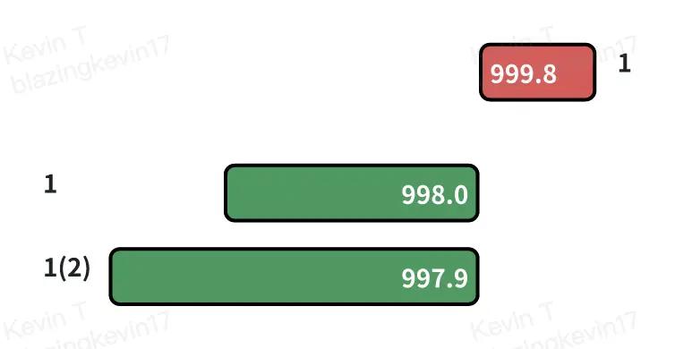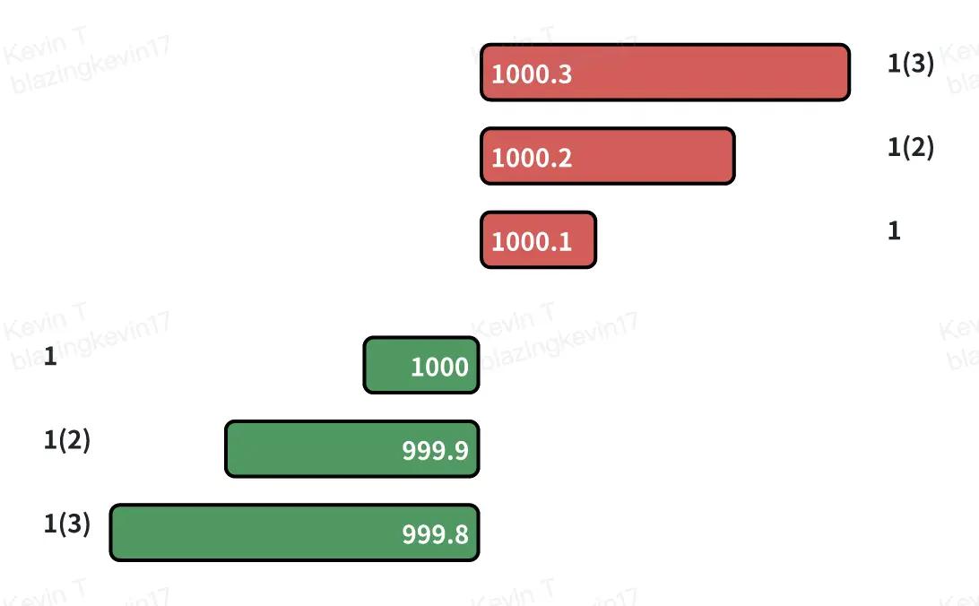 - Mức chênh lệch hiện tại : Chênh lệch giữa giá mua tốt nhất ($1000,0) và giá bán tốt nhất ($1000,1) là $0,1.