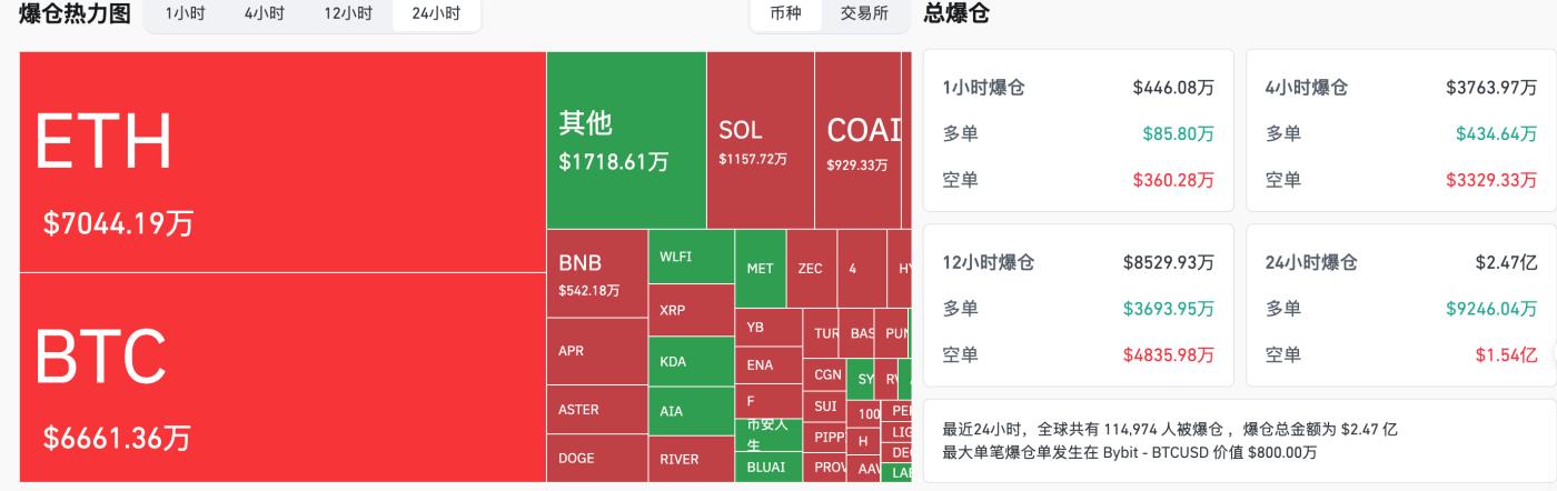 Dữ liệu cháy tài khoản 24 giờ: Tổng cộng có 114.974 người bị thanh lý trên toàn thế giới, với tổng số cháy tài khoản là 247 triệu đô la Mỹ, bao gồm 66,61 triệu đô la Mỹ cháy tài khoản BTC, 70,44 triệu đô la Mỹ cháy tài khoản ETH và 5,42 triệu đô la Mỹ cháy tài khoản BNB.