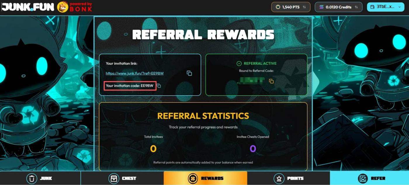 Mỗi khi người dùng tiêu hủy token thông qua Junk.Fun, một phần phí giao dịch sẽ được dự án trích ra để chung vào một quỹ thưởng, đồng nghĩa với việc số lượng người tham gia càng đông, quỹ thưởng tương ứng sẽ càng lớn. Những người tham gia giai đoạn đầu cũng được quyền khởi tạo liên kết giới thiệu, cung cấp cánh cổng tiếp cận dễ dàng cho những người khác, cũng như cơ hội gia tăng hệ số điểm thưởng có thể nhận về.