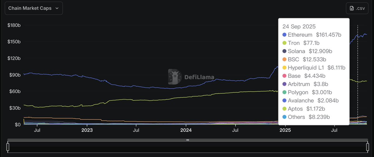 Tăng trưởng 170% so với cùng kỳ năm trước, trở thành Chuỗi stablecoin lớn thứ ba lần Ethereum và TRON .