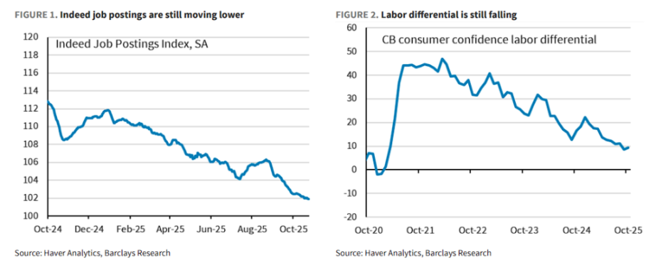 Trên thị trường lao động, chỉ báo, bao gồm thông báo tuyển dụng trên Indeed và khoảng cách lao động (việc làm nhiều so với việc làm khó tìm), cho thấy nhu cầu đang chậm lại.