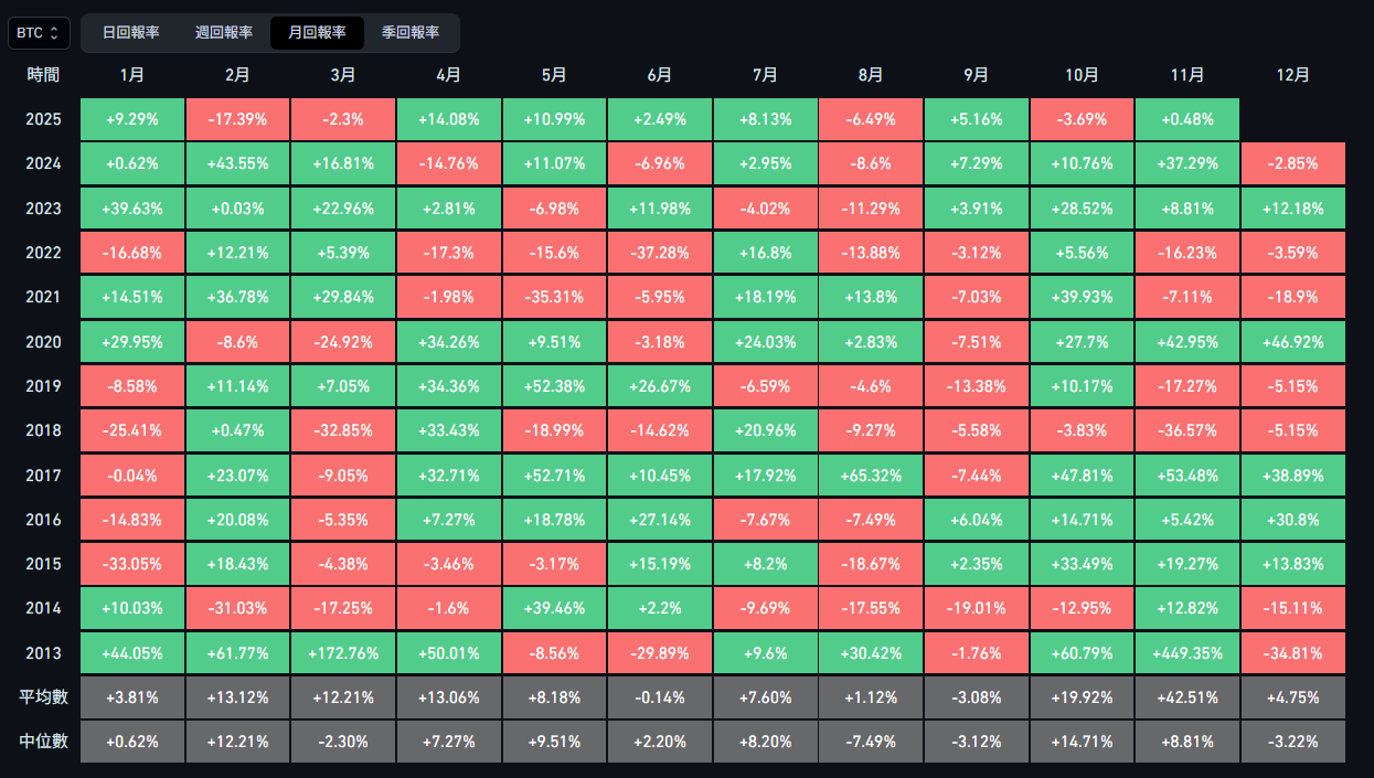 Đầu tiên, đó là yếu tố mùa vụ. Nhìn lại dữ liệu lịch sử của Bitcoin từ năm 2013 đến năm 2024, tháng 11 luôn là tháng Bitcoin có hiệu suất mạnh nhất trong năm, với mức tăng trung bình 42,5%. Nếu mô hình lịch sử này lặp lại, dựa trên mức giá hiện tại khoảng 110.000 đô la, Bitcoin vẫn có tiềm năng vượt qua mốc 150.000 đô la hoặc thậm chí cao hơn.