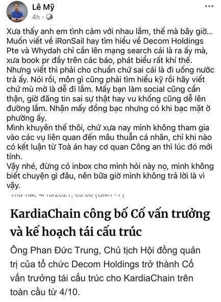 Trước khi gửi công văn đến các cơ quan quản lý, Hiệp hội cho biết đã trực tiếp liên hệ với ông Lê Mỹ qua số điện thoại lúc 17h30 cùng ngày 3/11/2025. Ông Lê Mỹ thừa nhận bài viết có thể gây hiểu lầm và cho biết sẽ điều chỉnh. Tuy nhiên, đến 18h30 cùng ngày, bài viết vẫn không được chỉnh sửa đúng.