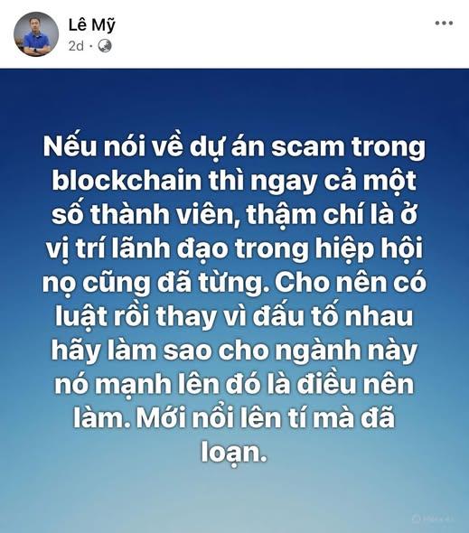 Ngày 03/11/2025, Hiệp hội Blockchain và Tài sản số Việt Nam (VBA) đã gửi Công văn số 107/2025/CV-VBA đến cơ quan quản lý báo chí về loạt bài đăng trên mạng xã hội của tài khoản Facebook được cho là nhà báo Lê Mỹ (công tác tại Báo Vietnamnet).