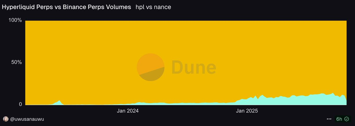 Gã khổng lồ thách thức Binance : Tính đến cuối tháng 9 năm 2024, khối lượng giao dịch của Hyperliquid chiếm khoảng 14% khối lượng giao dịch hàng tuần của Binance.