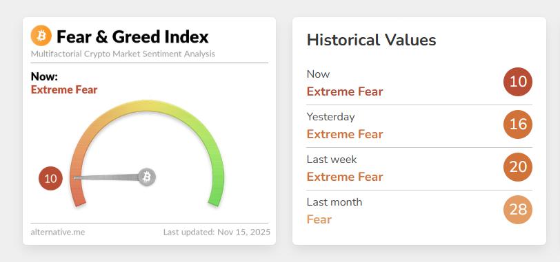 Chỉ số Sợ hãi & Tham lam ở mức 10 phản ánh nỗi sợ hãi cực độ tương đương với đầu năm 2022 và tháng 6 năm 2022, cả hai đều xác nhận giai đoạn thị trường giá xuống .