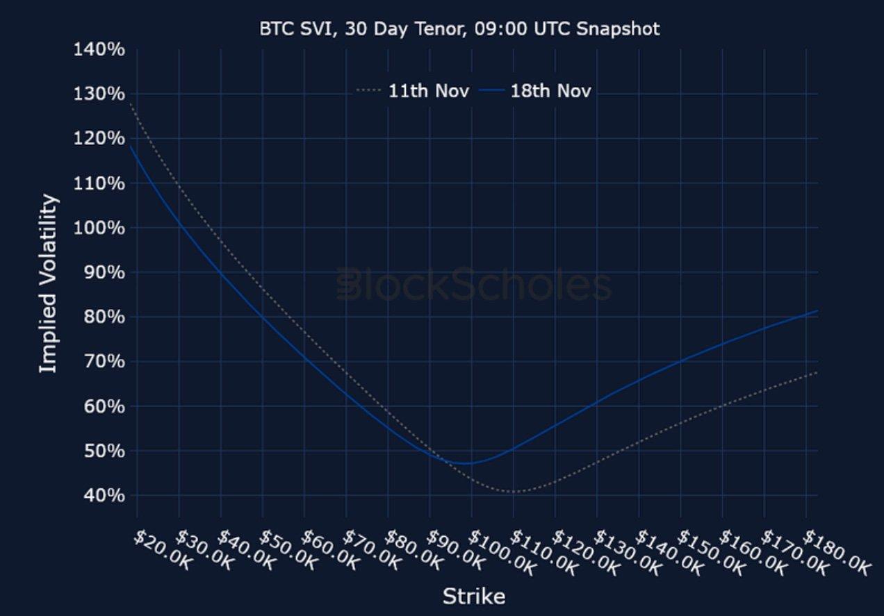 BIẾN ĐỘNG NGẦM ĐỊNH CỦA ATM BTC SVI – Nhiều lần giảm xuống dưới 100.000 đô la và xóa sạch mức tăng trong năm đã tạo tiền đề cho cấu trúc biến động ngược.