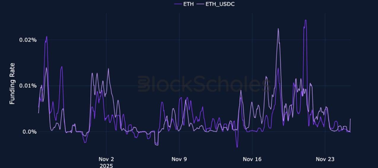 TỶ LỆ TÀI TRỢ ETH – Tỷ lệ tài trợ trong ETH hầu như không phản ánh xu hướng giảm giá như các chỉ số phái sinh khác.