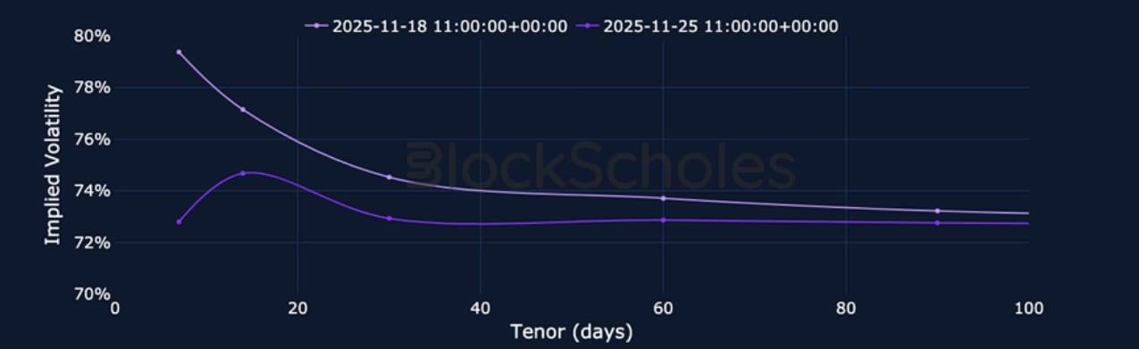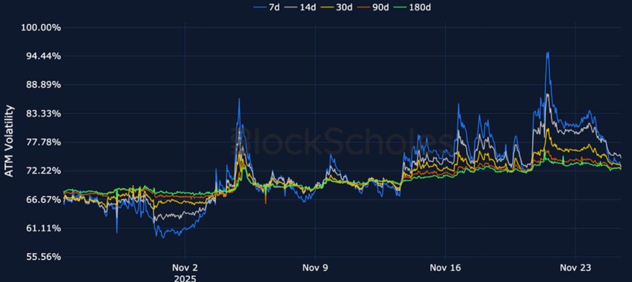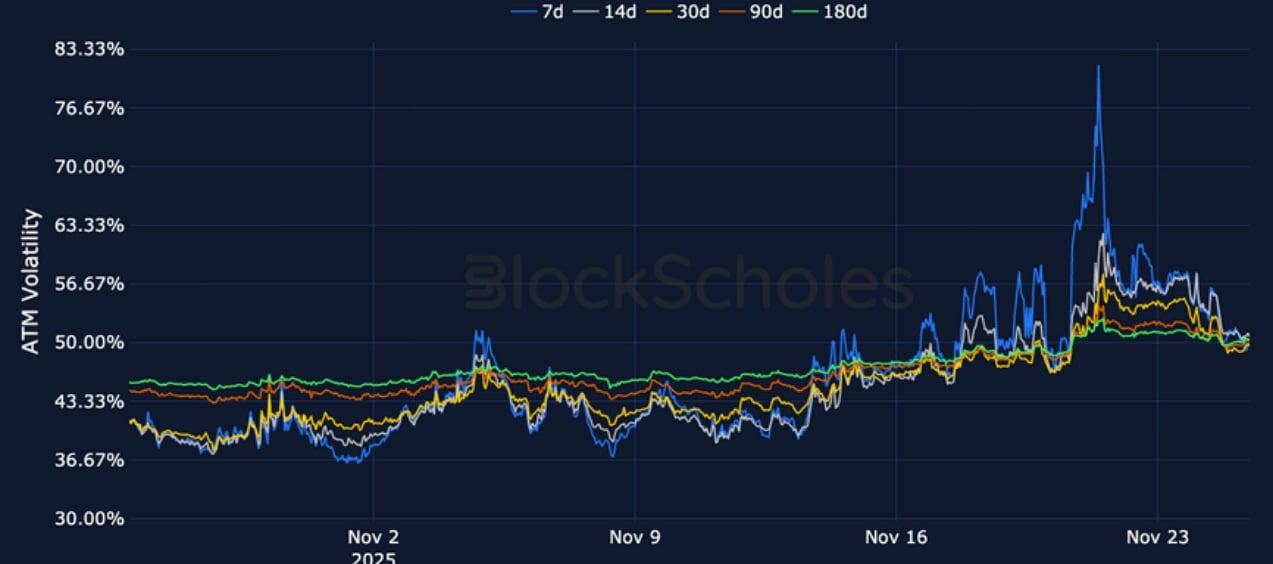 BIẾN ĐỘNG NGẦM ĐỊNH CỦA BTC SVI ATM – Cấu trúc kỳ hạn của biến động hiện đã đảo ngược sau một trong những đợt biến động BTC cực đoan nhất trong năm nay.