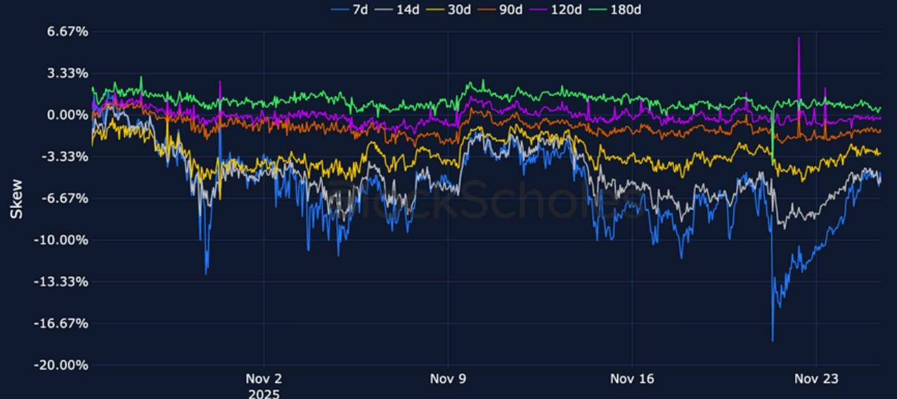 Đảo ngược rủi ro BTC 25-Delta – Nụ cười BTC trong ngắn hạn đã xóa bỏ tạm thời xu hướng nghiêng về quyền chọn bán OTM khi giá đã phục hồi từ mức đáy cực đoan nhất.