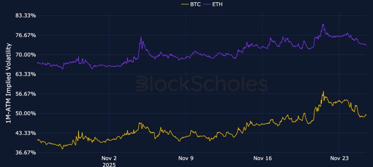 BIẾN ĐỘNG NGẦM ĐỊNH CỦA ETH SVI ATM – Giá biến động đã giảm, nếu chưa đảo ngược, trong các động thái đi ngang vào đầu tuần này.