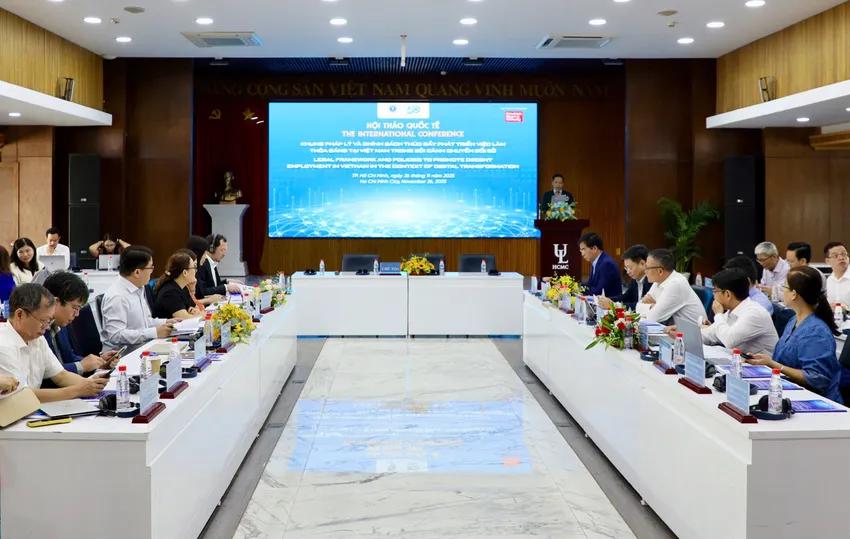 Ngày 26-11, Trường ĐH Luật TP.HCM phối hợp cùng Tổ chức Friedrich-Ebert-Stiftung (FES) đã tổ chức hội thảo quốc tế về “Khung pháp lý và chính sách thúc đẩy việc làm thỏa đáng trong kỷ nguyên số”. Sự kiện quy tụ nhiều chuyên gia trong lĩnh vực pháp lý, lao động và kinh tế số nhằm bàn về cách Việt Nam có thể xây dựng thị trường lao động hiện đại và bền vững.
