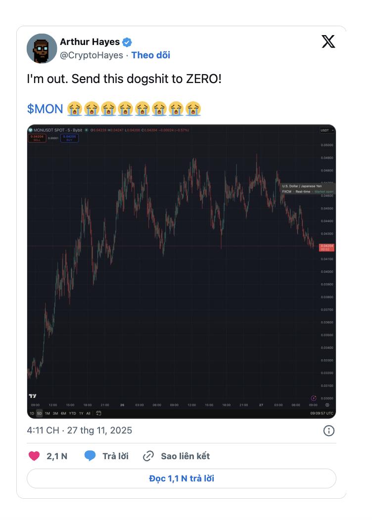 Thị trường tuần này trở nên sôi động bất ngờ khi cái tên Monad (MON) bị cuốn vào một làn sóng tranh luận dữ dội – và tâm điểm không ai khác chính là Arthur Hayes. Chỉ trong 48 giờ, nhà sáng lập BitMEX đã biến MON thành chiến trường căng thẳng nhất trên thị trường altcoin.