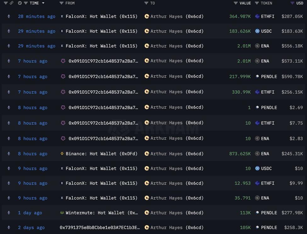 Riêng ngày 26/11, ông mạnh tay chi thêm 536.000 USD để mua 218.000 PENDLE. Đáng chú ý, Hayes còn liên tục mua lại ENA, dù trước đó hai tuần ông đã bán 5,02 triệu ENA ở mức giá thấp hơn.