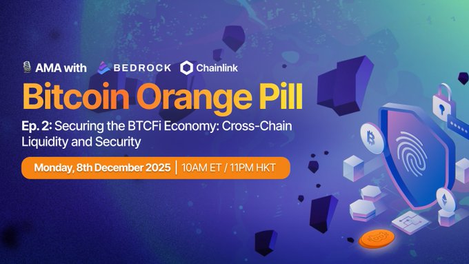 Một liều thuốc Bitcoin Orange Pill khác với Chainlink. 🟠 Phiên này sẽ phân tích cách BTCFi duy trì tính bảo mật trên nhiều chuỗi và kế hoạch mở rộng của Bedrock hỗ trợ sự tăng trưởng đó như thế nào. Đặt ngày. 📅 8 tháng 12 năm 2025 ⏰ 10 giờ sáng ET / 11 giờ tối HKT 🎧 x.com/i/spaces/1vAGRQVLDVjKl…