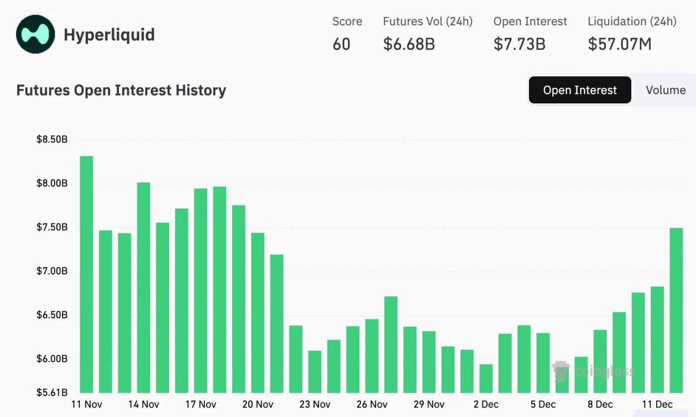 Theo TechFlow, vào ngày 12 tháng 12, theo nhà phân tích on-Chuỗi Ai Yi (@ai_9684xtpa), khối lượng giao dịch mở (OI) hiện tại của Hyperliquid đã đạt 7,73 tỷ USD.