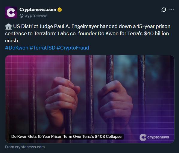 Đồng sáng lập Terraform Labs, Do Kwon, có khả năng phải đối mặt với một phiên tòa bổ sung và án tù dài hạn tại Hàn Quốc sau khi bị một tòa án liên bang ở Manhattan tuyên án 15 năm tù vì đứng sau vụ sụp đổ TerraUSD trị giá 40 tỷ USD.