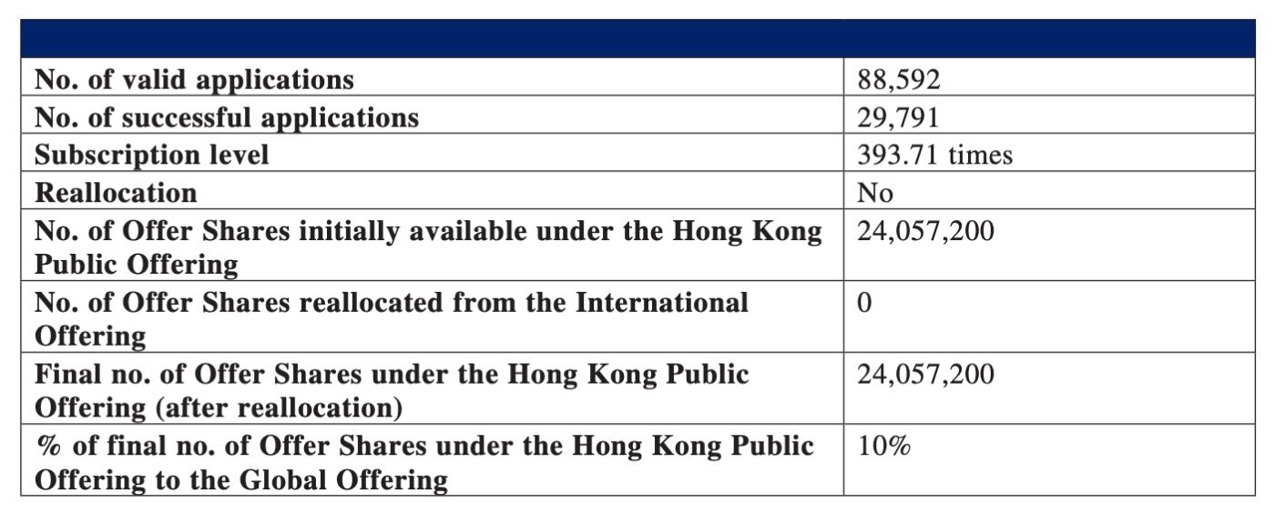Đợt chào bán tại Hong Kong được đăng ký vượt mức gần 394 lần, với 24 triệu cổ phiếu được phân phối. Trong khi đó, phần IPO quốc tế đạt mức đăng ký gấp 5,5 lần lượng chào bán, với 216,5 triệu cổ phiếu được bán ra.