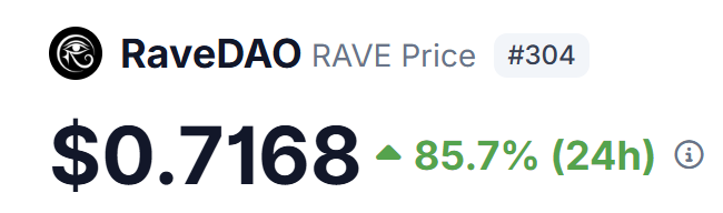 Diễn biến giá khá tốt cho $RAVE. Tăng 85% trong 24 giờ qua. Được xây dựng trên nền tảng Base và được hỗ trợ bởi hệ sinh thái hơn 50 đối tác Web2 và Web3, dự án đang chứng kiến sự tăng trưởng tài chính mạnh mẽ: doanh thu 1,3 triệu đô la vào năm 2024, 3 triệu đô la vào năm 2025 và dự kiến vượt quá 7 triệu đô la vào năm 2026. Với sự hậu thuẫn từ CZ, Aster, Jesse (Base), WLFI, Trump Jr++ và được niêm yết trên các sàn giao dịch hàng đầu, đà phát triển tiếp tục được củng cố. Đã hợp tác với @RaveDAO để nâng cao nhận thức về dự án này.