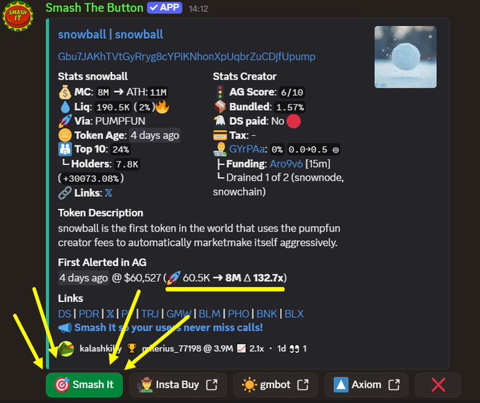 Đang tập luyện à? Đồng đội của bạn vẫn đang bắn tỉa đấy 😎 Họ nhìn thấy $SNOWBALL → nhấn "Đập tan tành" → mọi người tự động mua. Nhấn nút nhanh + @agsniperbot = COMBO bắn tỉa tự động MIỄN PHÍ 🤖