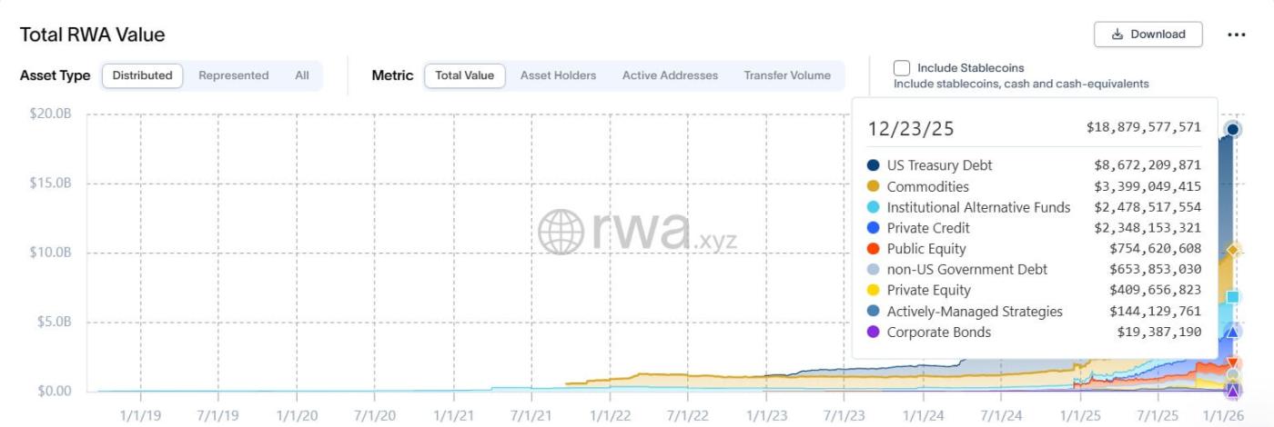Đến tháng 12, Tài sản đang quản lí (AUM) của các quỹ thị trường tiền tệ token hóa và trái phiếu kho bạc Hoa Kỳ đã vượt quá 8 tỷ đô la, trong khi toàn bộ thị trường RWA có giá trị khoảng 20 tỷ đô la.