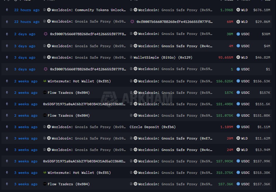 Hơn $676.18M $WLD sắp được unlock 22 tiếng trước, địa chỉ ví Worldcoin Community tokens unlock có động thái cực đáng chú ý khi gửi 1.396B $WLD ~ $676.18M sang địa chỉ ví chuyên phân phối $WLD cho cộng động. 1 năm trước, ví này cũng có hành động tương tự, lượng $WLD sau đó được phân phối từ từ cho cộng động trong 1 năm. Hành động này đang được lặp lại, có nghĩa 1.296B $WLD này sẽ được mở khóa vào market vào năm tới. Hiện tại theo lịch unlock thì mỗi ngày $WLD chỉ mở khóa 3.2M $WLD cho community => có nghĩa là sẽ unlock tổng 1.168B $WLD trong 1 năm tới => lượng unlock hiện tại đã vượt quá hơn 230M token. Vậy 230M $WLD này sẽ đi về đâu? hiện tại các số liệu unlock trong thời gian tới đều không khớp với con số này, liệu là team đang unlock thêm cho các phân bổ token khác thực sự đang thiếu sự minh bạch trong quá trình unlock token của team?