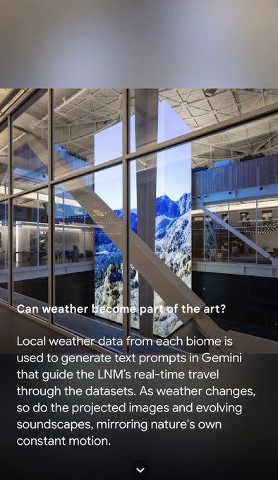 Các bạn thân mến, tôi rất vui mừng được chia sẻ dự án nghệ thuật AI cuối cùng và tham vọng nhất của chúng tôi trong năm 2025 — Machine Dreams: Biophilia, được Google đặt hàng cho trụ sở mới của họ, Gradient Canopy. Dự án này bắt đầu cách đây gần hai năm nhằm hỗ trợ nghiên cứu Mô hình Thiên nhiên Quy mô lớn (Large Nature Model). Để thực hiện công trình này, Refik Anadol Studio đã thu thập 2 petabyte dữ liệu âm thanh và hình ảnh từ bốn hệ sinh thái khác nhau của California bằng cách đi xuyên qua các khu rừng Redwoods, Ocean, Bay và Foothills. Dữ liệu này được kết hợp với các bộ dữ liệu sinh thái có sẵn công khai để huấn luyện Mô hình Thiên nhiên Quy mô lớn (LNM) một cách bền vững trên Google Cloud bằng năng lượng tái tạo. Dữ liệu thời tiết địa phương từ mỗi hệ sinh thái được sử dụng theo thời gian thực để tạo ra các lời nhắc bằng văn bản trong Gemini phiên bản mới nhất, hướng dẫn LNM khám phá các tập dữ liệu. Khi thời tiết thay đổi, những hình ảnh trong mơ và âm thanh cũng thay đổi theo, phản ánh sự vận động không ngừng của thiên nhiên — một bức tranh dữ liệu AI sống động hài hòa hoàn hảo với thiên nhiên. Công nghệ đột phá đằng sau tác phẩm nghệ thuật này cũng sẽ cung cấp năng lượng cho Dataland, và tôi rất mong sớm được chia sẻ thêm thông tin. Tôi vô cùng biết ơn nhóm đã làm việc chăm chỉ cho dự án độc đáo và hoành tráng này, cũng như ban lãnh đạo và các nhà khoa học của Google vì sự hỗ trợ liên tục dành cho studio của chúng tôi kể từ năm 2015!