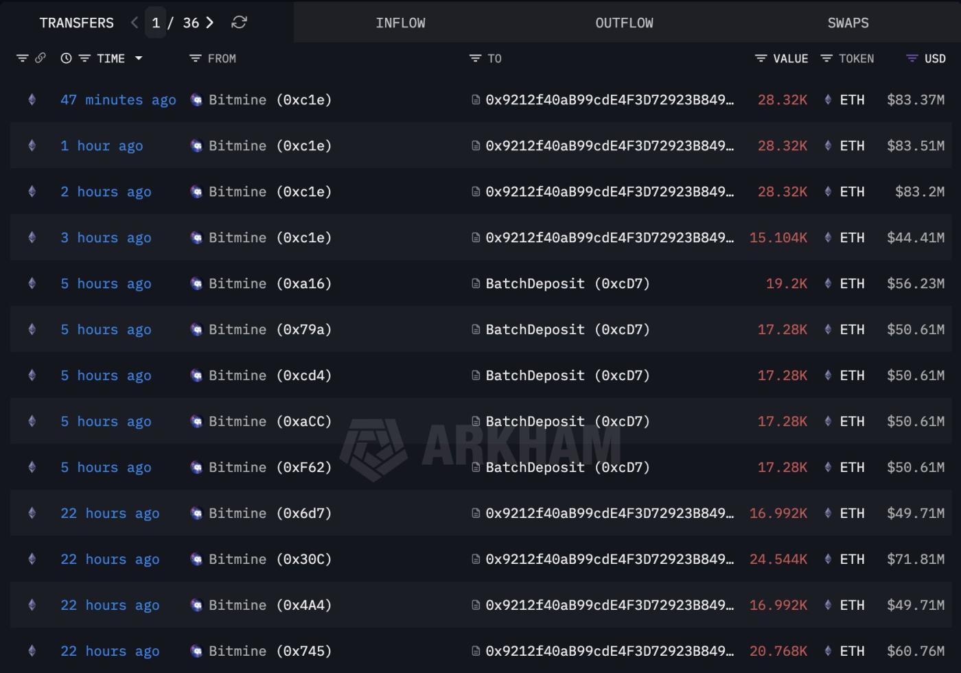 BitMine Immersion Technologies - đơn vị nắm giữ Ether doanh nghiệp lớn nhất - đã stake 342.560 ETH, trị giá hơn 1 tỷ USD trong hai ngày trước Chủ nhật, theo dữ liệu từ Lookonchain.