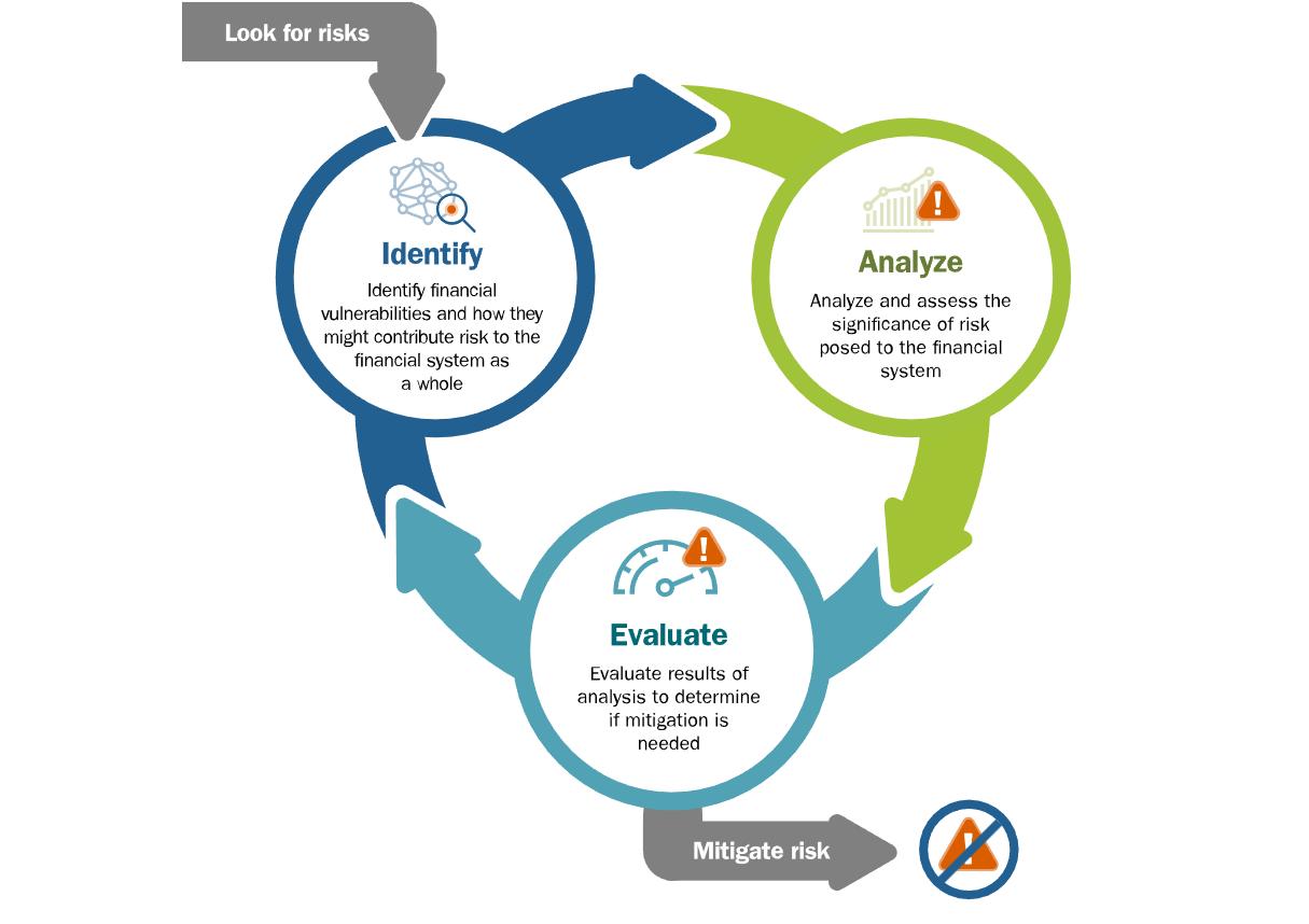 Hình 3: Khung chu kỳ để nhận diện, phân tích và đánh giá rủi ro trong hệ thống tài chính